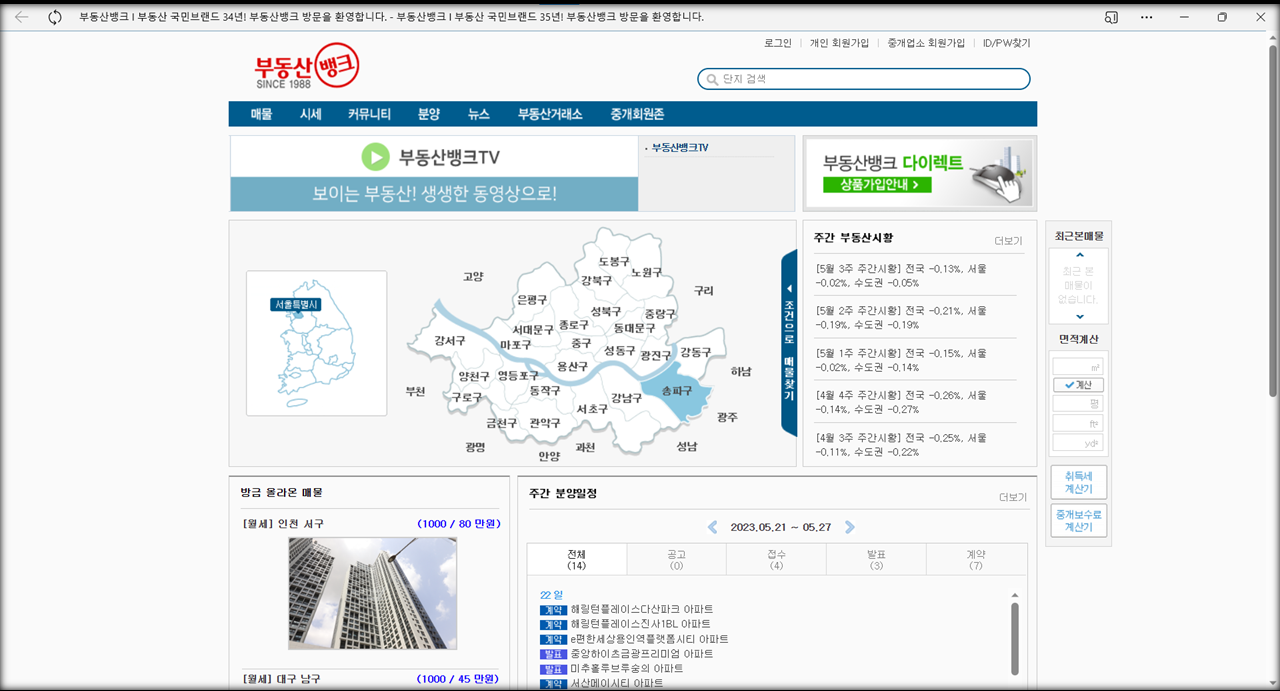 부동산뱅크 메인페이지