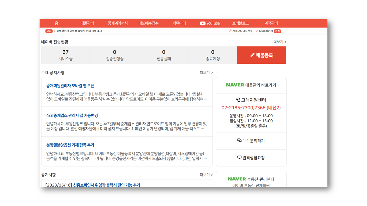 부동산뱅크 매물관리센터
